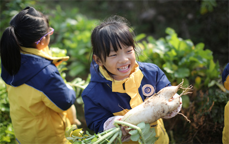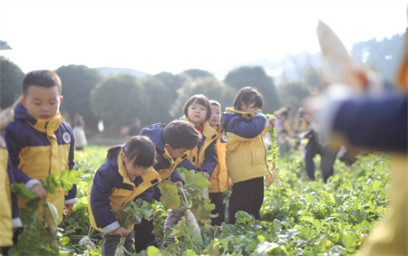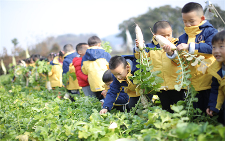 迎着初冬温暖和煦的阳光,金色摇篮的老师和孩子们行走在田间地头,与泥土亲昵接触,体验拔萝卜的乐趣,小朋友们在老师的指导下,弯下腰,用小手攥住萝卜叶子的根部使劲一拔,萝卜便从地里被拔出来了,这份农事体验带给孩子的不仅只是萝卜被拔出那一瞬间的快乐体验,更多的是一点一滴的生活积累,在整个过程中不仅了解了萝卜的生长过程,也感受着大自然的馈赠,收获一份快乐与成长!